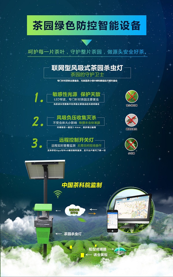 茶園綠色防控智能設(shè)備:呵護每一片茶葉,守護整片茶園,做源頭安全好茶。