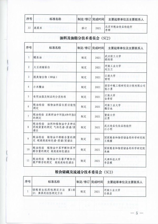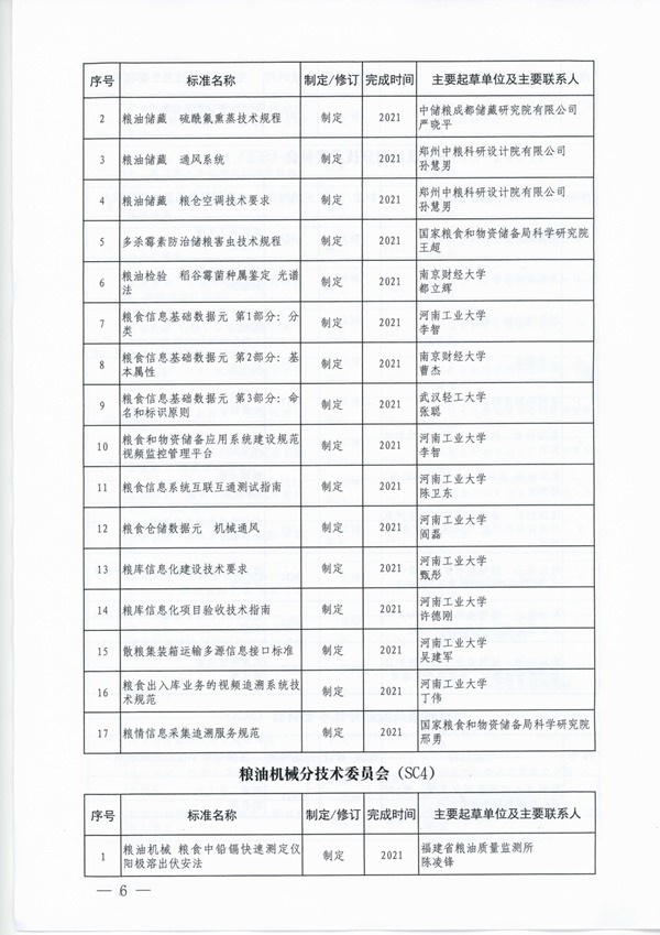 2019年第一批糧食行業(yè)標(biāo)準(zhǔn)制修訂計(jì)劃