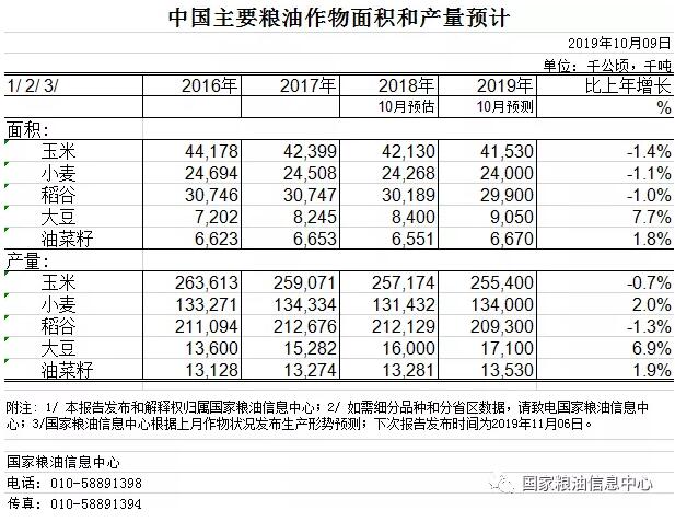國家糧油信息中心:2019年主要糧油作物面積產(chǎn)量預(yù)測數(shù)據(jù)