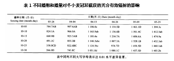 研究播種期對(duì)小麥冠層截獲的光合有效輻射量的影響