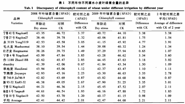 一、干旱脅迫對小麥品種葉綠素含量的影響