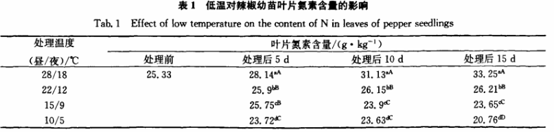 一、低溫對(duì)辣椒幼苗葉片氮含量的影響