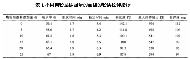 一、糊粉層細(xì)粉對面團(tuán)粉質(zhì)拉伸特性的影響